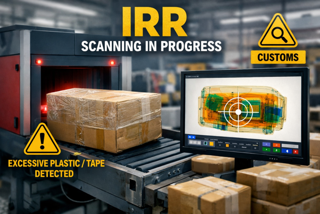 Shipments with excessive plastic or tape may be selected for IRR (Import Risk Review) scanning, which can result in: